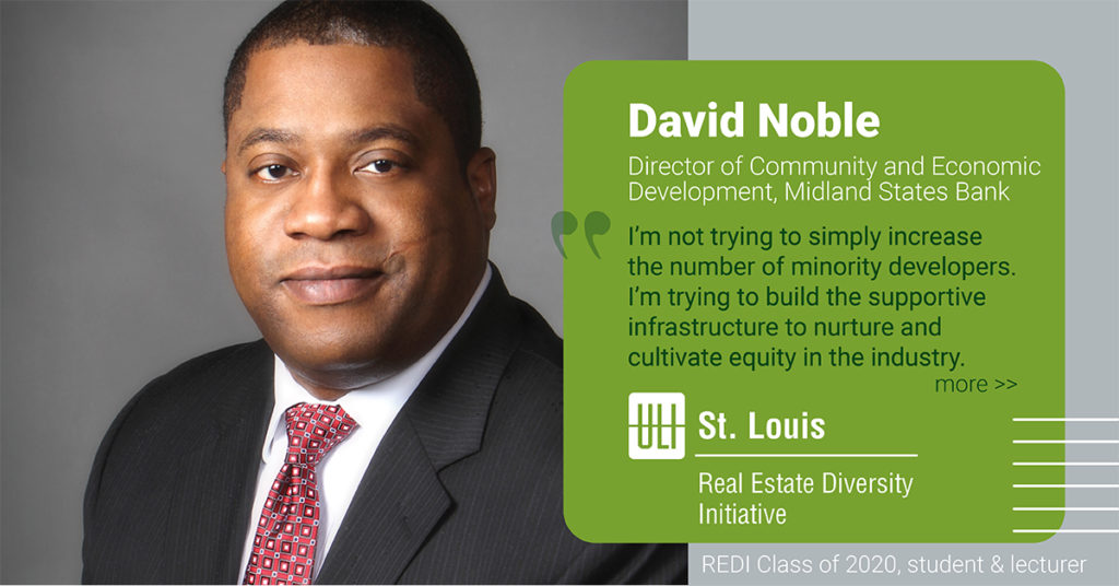 David Noble, Director of Community and Economic Development for Midland States Bank, was a lecturer for the REDI Program before he became a participant. After graduating with his Masters degree in Urban Planning and Development, he became connected with the Urban Land Institute.
