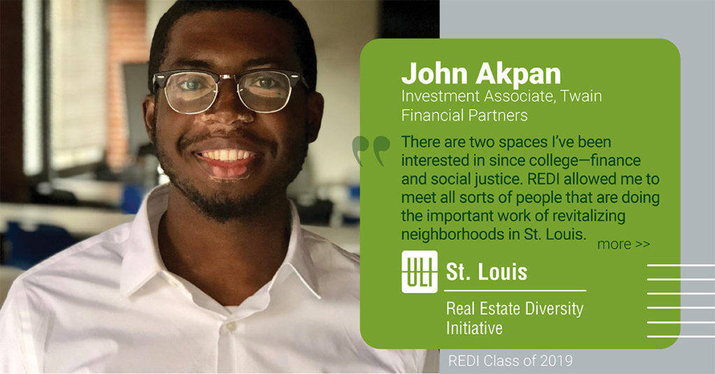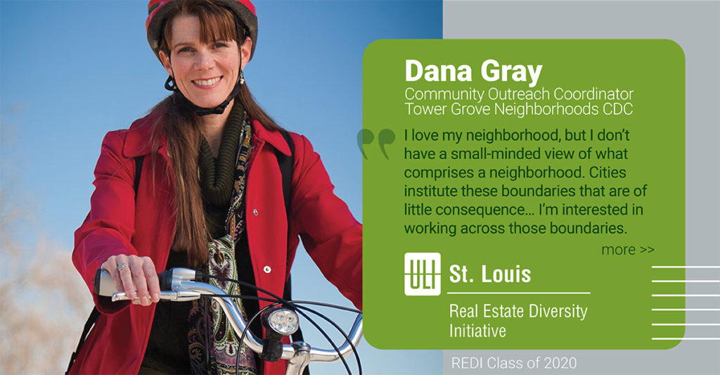 “I came across the REDI program through a coworker who is a part of ULI. It’s funny: I saw the application 2 days before the deadline and it really resonated with me, so I scrambled… Luckily, they were totally accommodating, and I was accepted into the program, which allowed me to meet all sorts of people that are doing the important work of revitalizing neighborhoods in St. Louis.”
